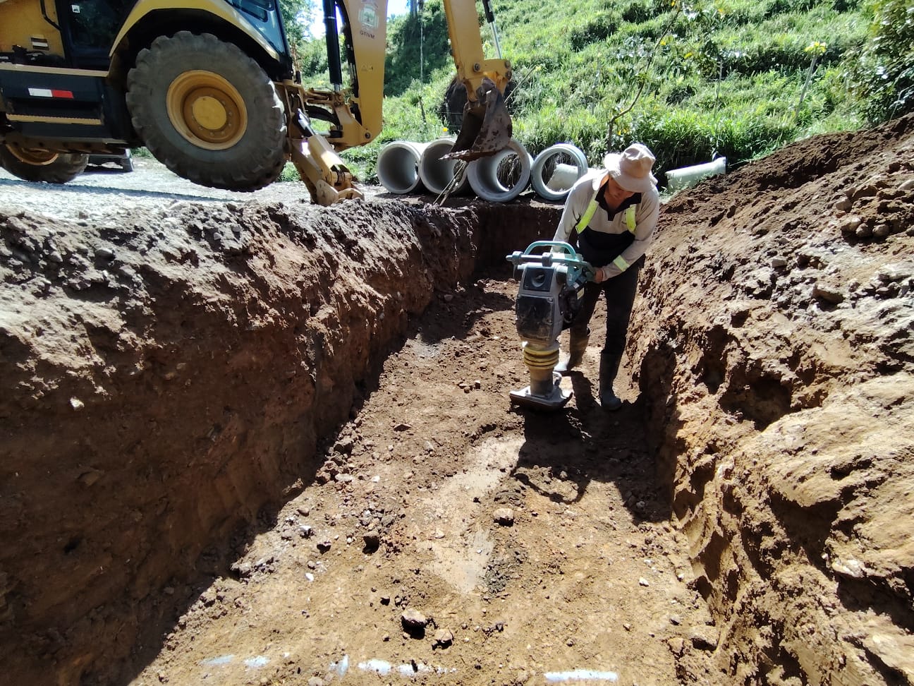 Continuamos ejecutando acciones de mejoramiento vial en el sector de La Escuadra, código 6-08-028, en el distrito de Pittier, mediante la colocación de un paso de alcantarilla.