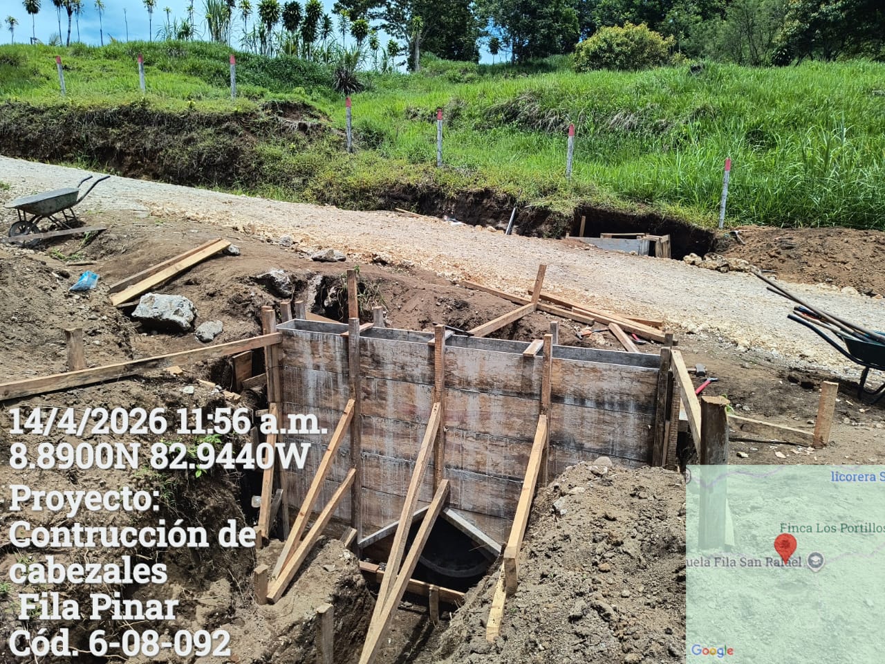 Avanzan los trabajos en la construcción de cabezales en el camino de Fila Pinar, en Gutiérrez Braun, correspondiente al código 6-08-092.