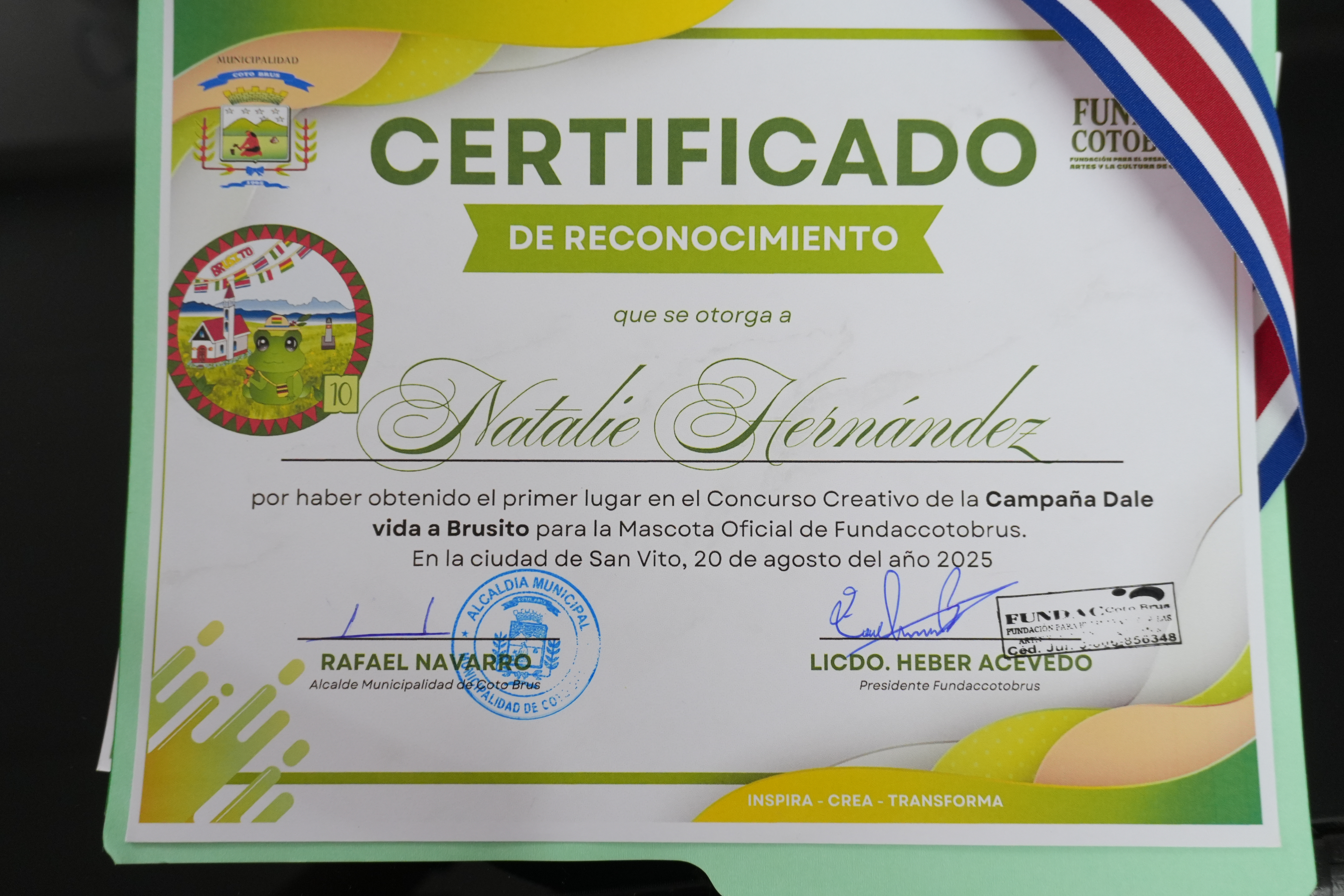 Esta mañana, la Fundación para el Desarrollo de las Artes y la Cultura de Coto Brus (FUNDAC COTO BRUS), en conjunto con la Municipalidad de Coto Brus, realizó la entrega de certificados como parte del cierre del concurso creativo “Dale Vida a Brusito”.