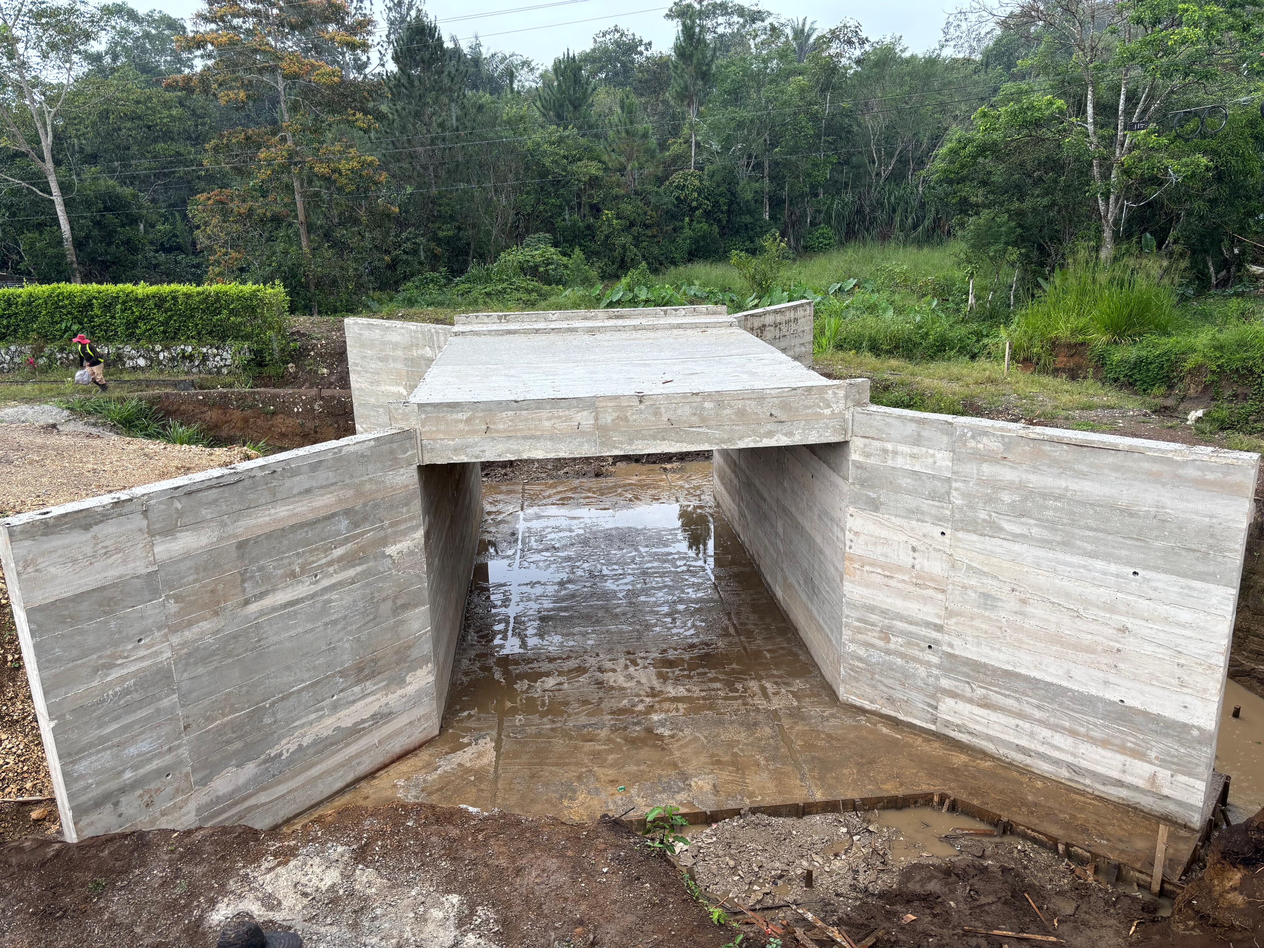 Actualmente, solo queda pendiente la colocación de las barandas y los rellenos de aproximación. Para ello, es necesario esperar un periodo de 30 días de curado, lo que permitirá garantizar la calidad y seguridad de la estructura antes de continuar con los trabajos finales.