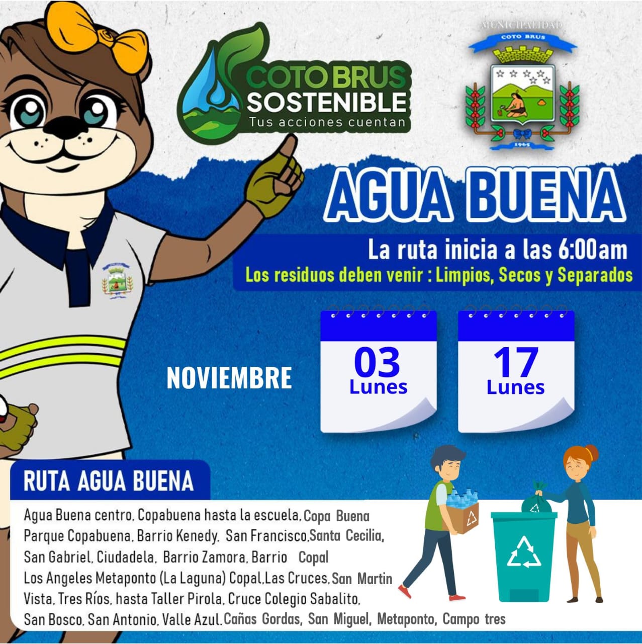 La Municipalidad de Coto Brus, por medio del Departamento de Gestión Ambiental, informa las fechas de recolección de residuos valorizables correspondientes al mes de Noviembre.