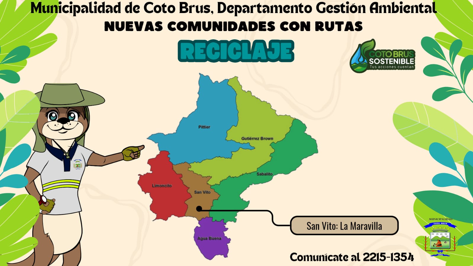 La Municipalidad de Coto Brus informa que se habilitó una ruta para la recolección de residuos valorizables en dicha comunidad.
