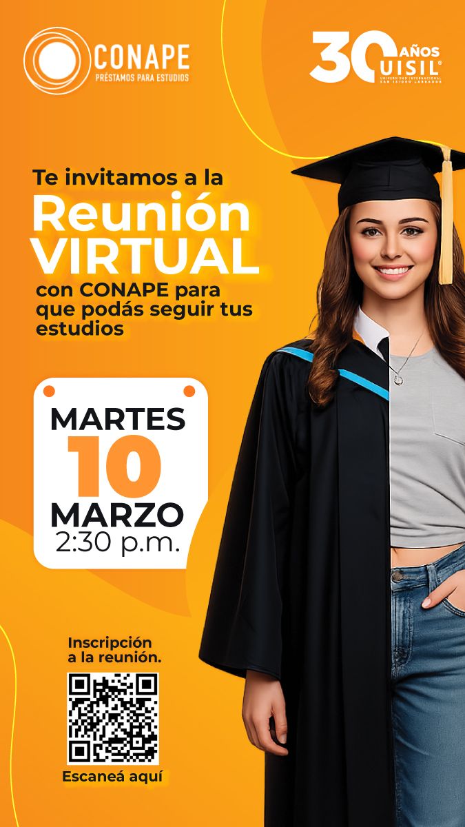 La UISIL te invita a participar en una reunión virtual con CONAPE, donde podrás conocer facilidades para hacer realidad tus metas académicas.