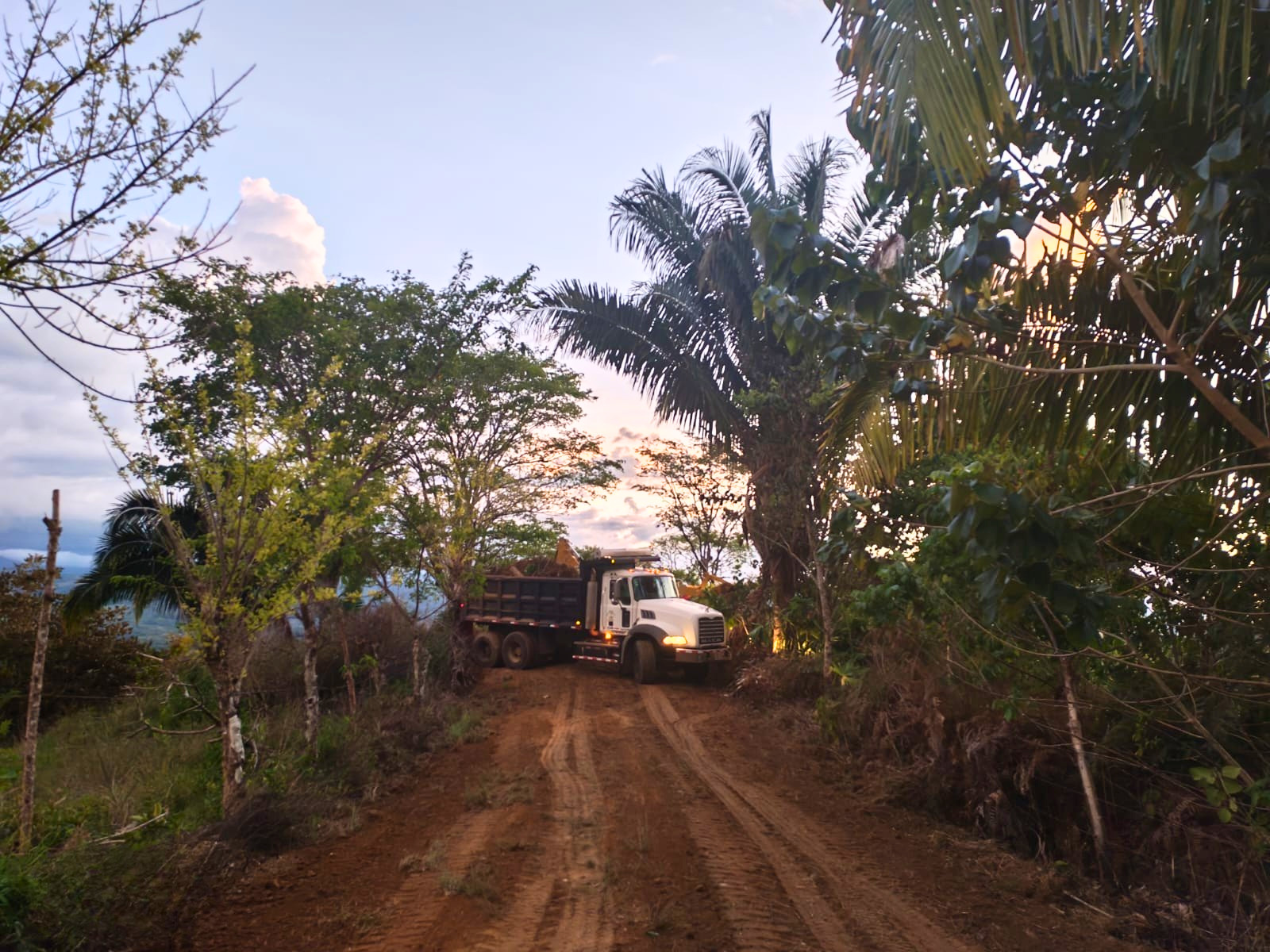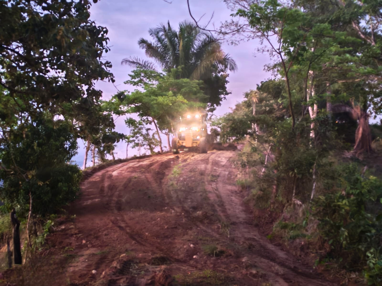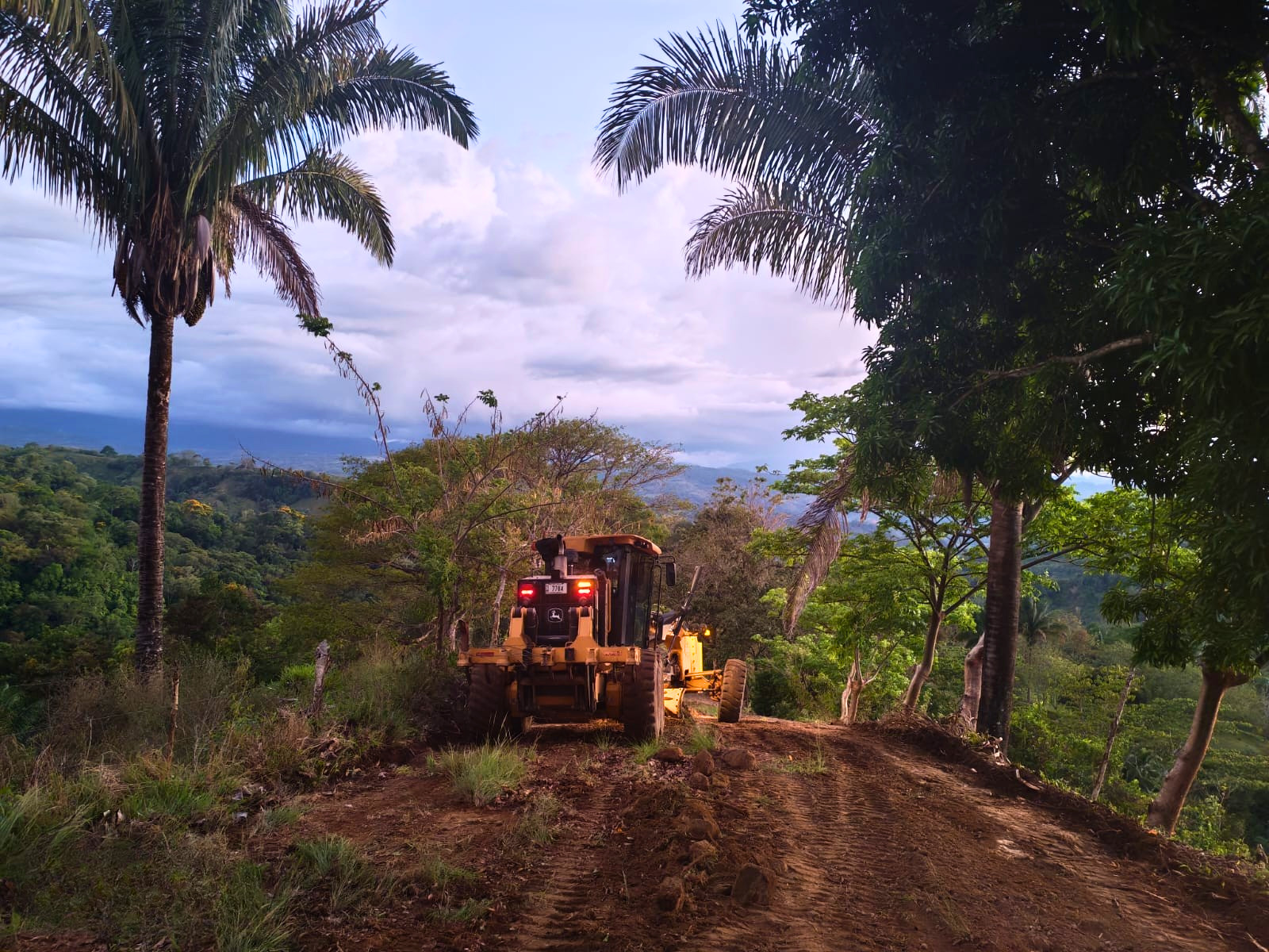 Continuamos ejecutando labores de mantenimiento vial en el camino San Martín, código 6-08-122, en el distrito de Pittier, mediante la limpieza de cunetas y la conformación de la superficie de ruedo.