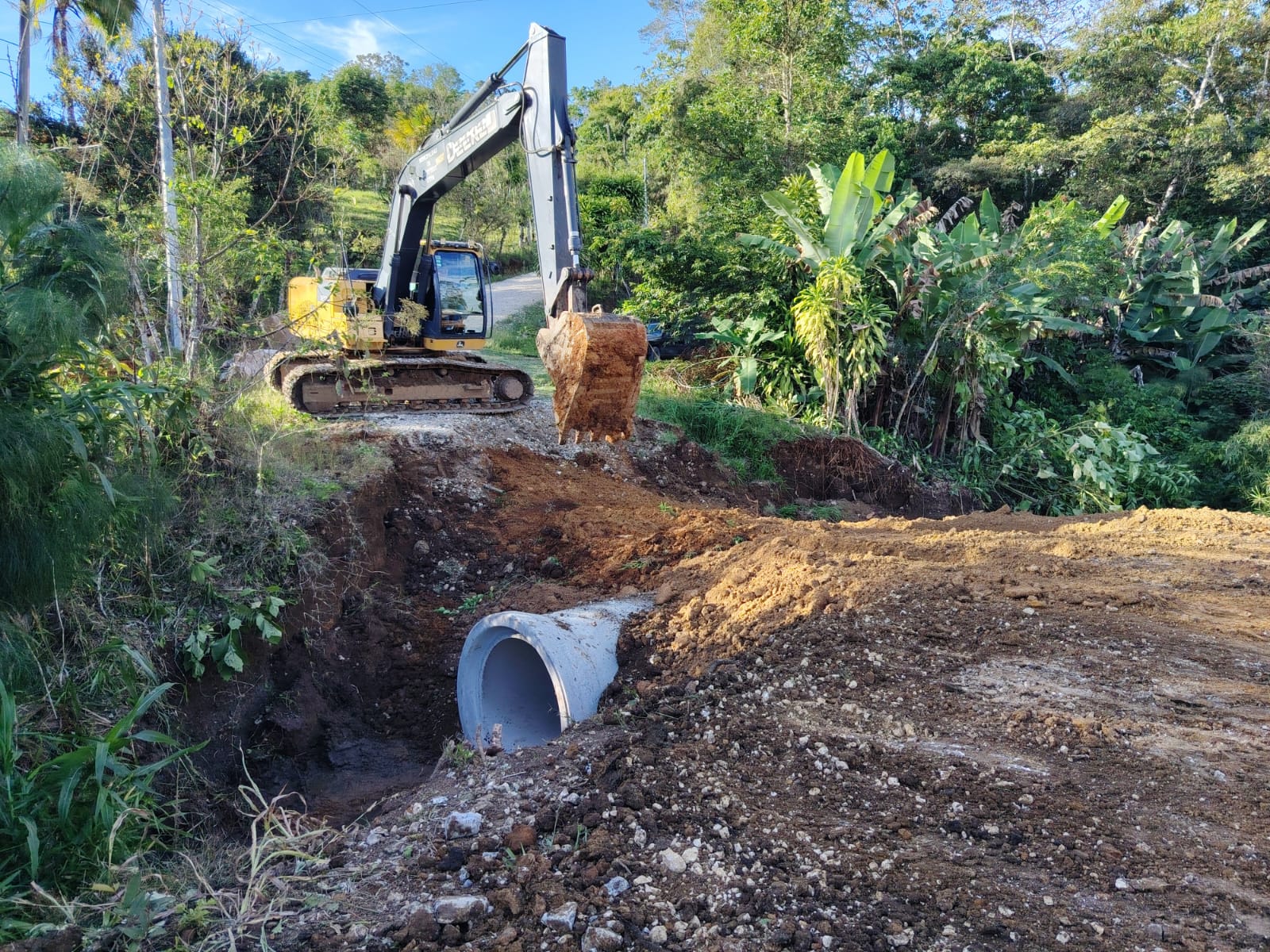 En el camino San Francisco – San Gabriel (código 6-08-294), en el distrito de Agua Buena, avanzamos con la colocación de un paso de alcantarilla, una obra que contribuye al adecuado manejo de las aguas y a la protección de la vía.