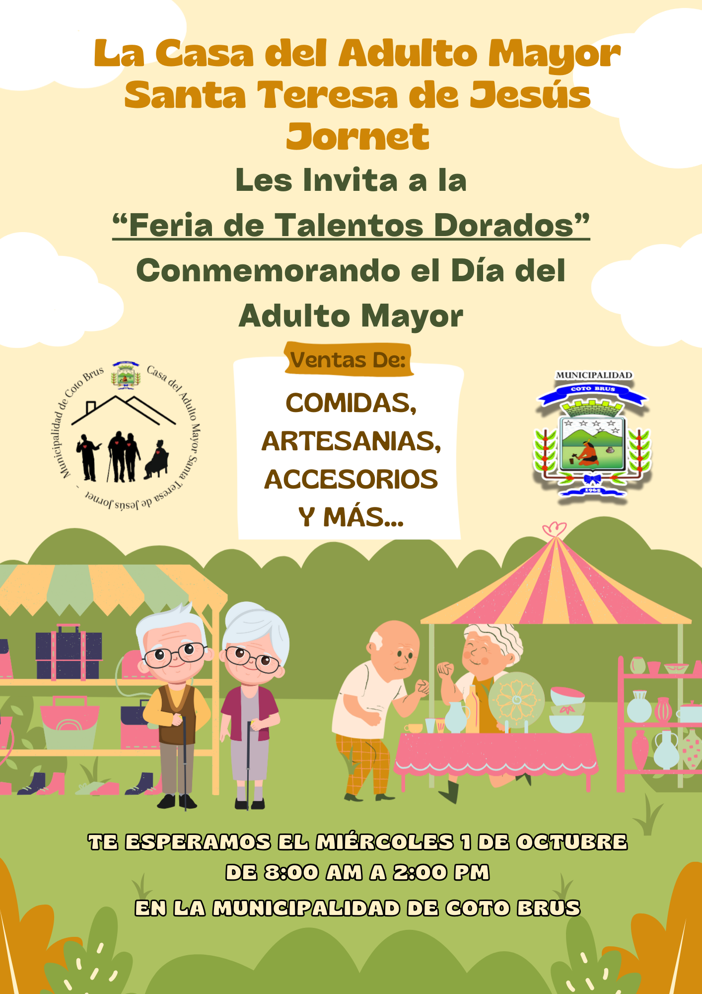 La Casa del Adulto Mayor Santa Teresa de Jesús Jornet, les invita a compartir en la Feria de Talentos Dorados, una celebración especial en conmemoración del Día del Adulto Mayor.