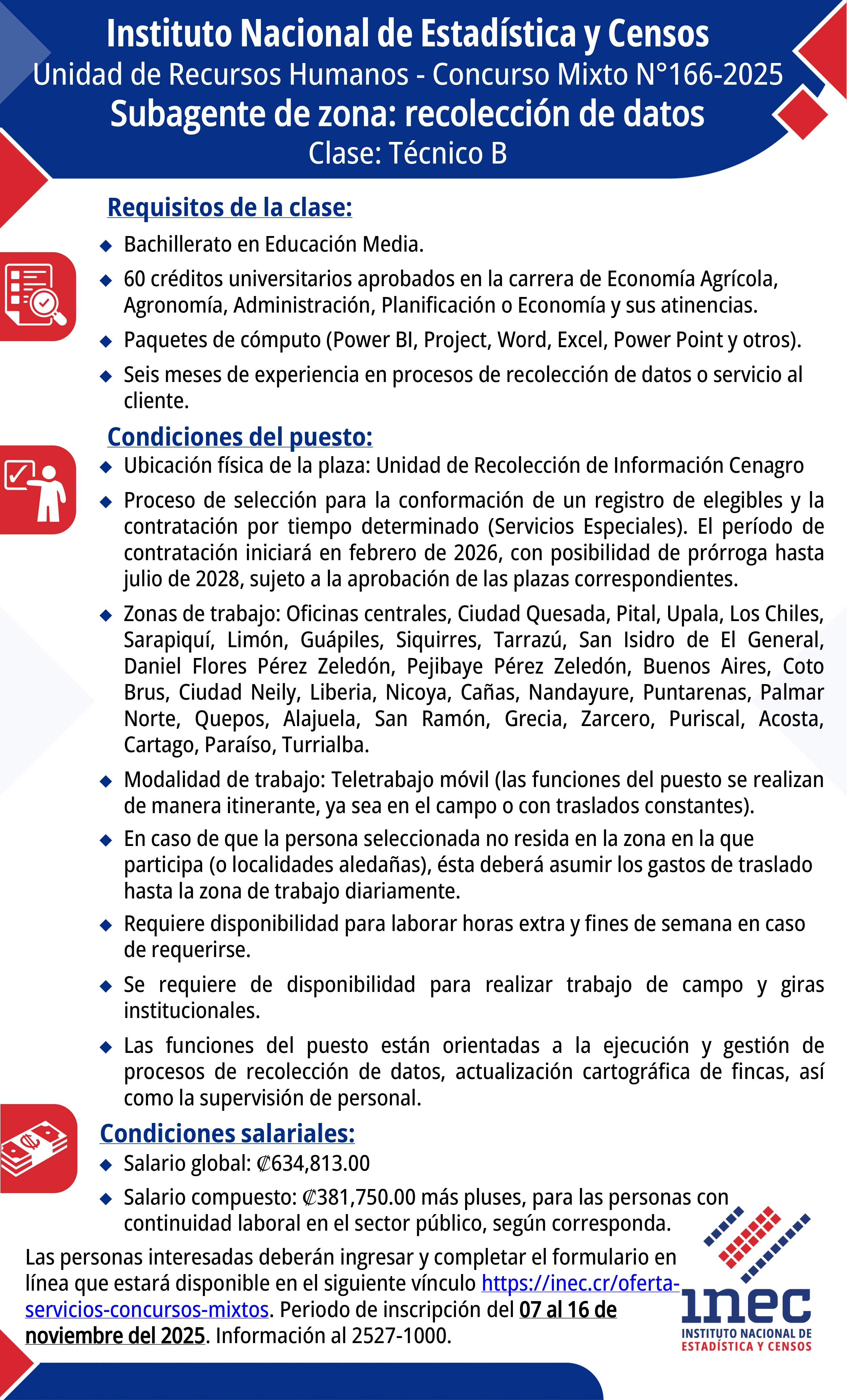 El Instituto Nacional de Estadística y Censos, requiere contratar personas encargadas de recolección de datos.