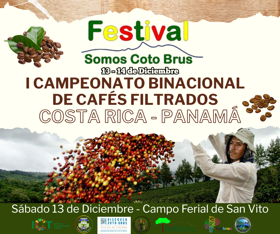 Este sábado 13 de diciembre, en el marco del Festival Somos Coto Brus, se llevará a cabo el primer Campeonato Binacional de Cafés Filtrados, una actividad que une a Costa Rica y Panamá para celebrar la calidad, el talento y la pasión cafetalera de nuestra región.
