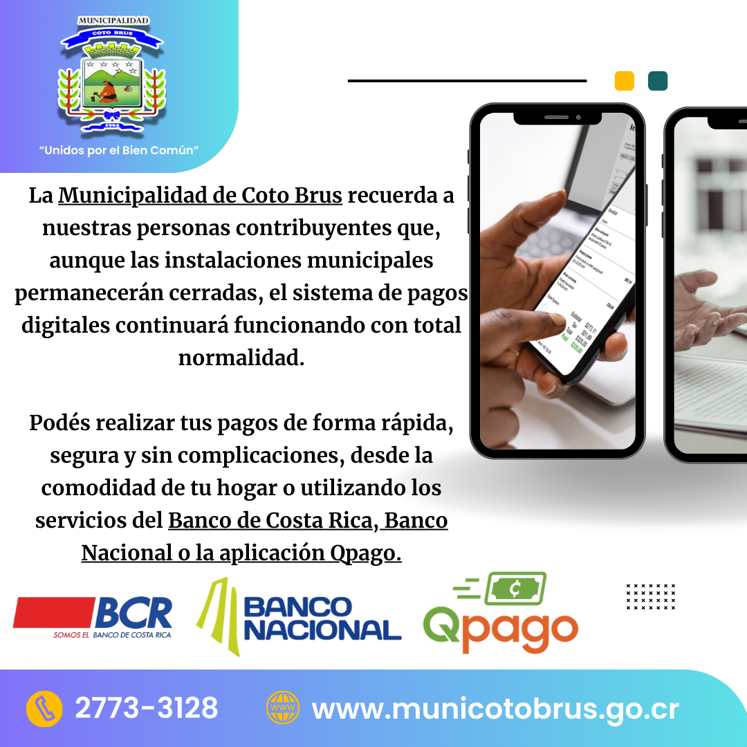 Les recordamos que, durante estas fechas, puedes realizar tus pagos de manera fácil y segura en las oficinas del Banco de Costa Rica, Banco Nacional o a través de la aplicación QPago.