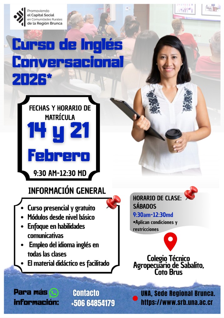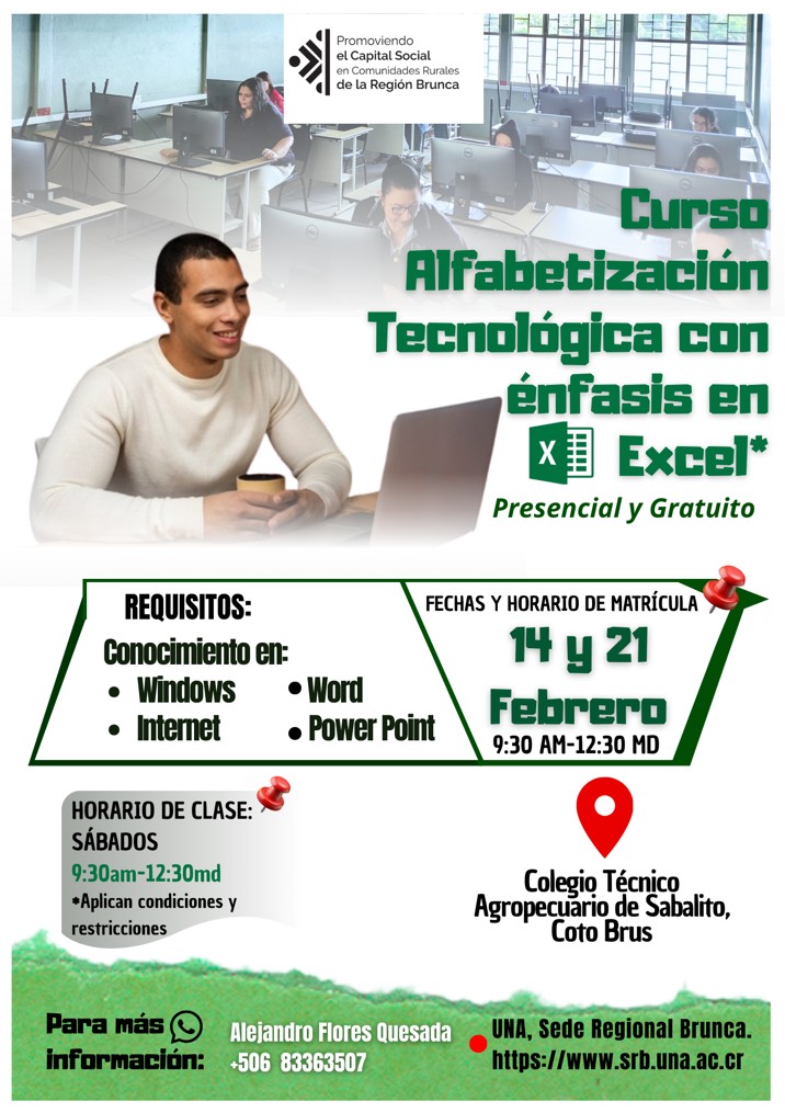 El programa “Promoviendo el Capital Social en Comunidades Rurales de la Región Brunca” le invita a participar en los cursos de: