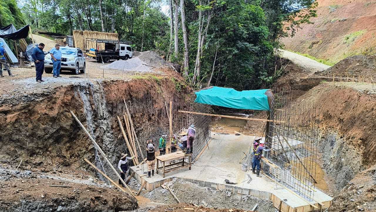 Continúan avanzando los trabajos en la construcción de la alcantarilla de cuadro La Choba, ubicada en el camino Fila Guinea Abajo – Monterrey, en el distrito de Pittier.