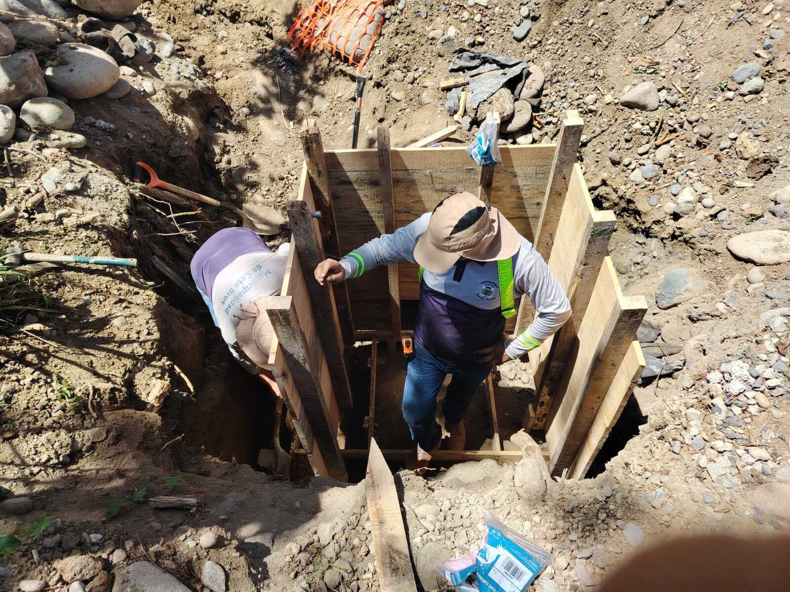 Se desarrollan trabajos de construcción de cabezales en el proyecto paso de alcantarilla en el sector de Puente Sansi, distrito de Pittier.